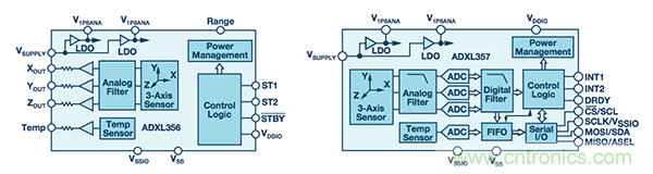 圖1. ADI公司新推出的ADXL356和ADXL357 MEMS加速度計(jì)