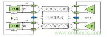 主要用于硬件高速計(jì)數(shù)器(HHSC)的輸入使用,接口電壓為5VDC,在應(yīng)用上為確保高速及高噪音抗性通常采用雙線(xiàn)驅(qū)動(dòng)方式(Line-Drive)。如果工作頻率不高與噪音低也可以采用5VDC的單端SINK或者SRCE接法,串聯(lián)一個(gè)限流電阻轉(zhuǎn)換成24VDC的單端SINK或者SRCE接法。
