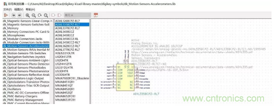 KiCad是一種開源免費(fèi)的電子設(shè)計(jì)自動(dòng)化 (EDA) 工具,能滿足基本的原理圖與PCB板設(shè)計(jì)功能,Digi-Key推出自己的Digi-Key KiCad 電子元器件庫,幫助加速設(shè)計(jì)進(jìn)程。其中包括多個(gè)ADI加速度傳感器的原理圖庫與封裝庫。舉例:ADI的 ADXL335BCPZ-RL7。