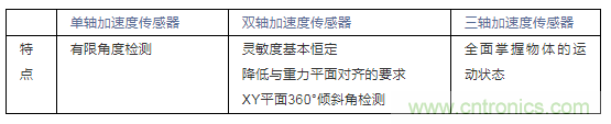 該使用哪種加速度傳感器,應(yīng)根據(jù)具體的應(yīng)用要求而定,比如檢測傾斜角范圍、檢測對象在XYZ三軸運(yùn)動上是否有限定、檢測精度要求等等。