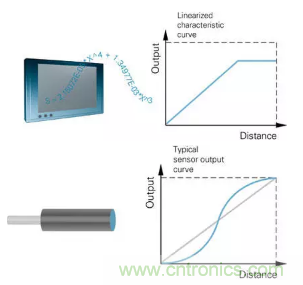 多項(xiàng)式是指將電感式模擬傳感器的典型輸出曲線轉(zhuǎn)換為線性信號(hào)所采用的數(shù)學(xué)函數(shù)。例如,它被集成在可編程邏輯控制器的軟件中,將S形傳感器信號(hào)變換為直線。