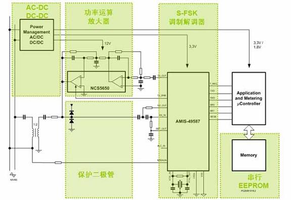 AMIS-49587符合IEC61334-5-1標準,為客戶提供眾多應用優(yōu)勢。例如,這器件基于ARM7TDMI處理器內(nèi)核,同時包含物理接口收發(fā)器 (PHY)和媒體訪問控制器(MAC)層,使其以單芯片方案結(jié)合了模擬調(diào)制解調(diào)器前端和數(shù)字后處理功能,而大多數(shù)競爭方案需要復雜的嵌入式軟件來執(zhí)行與 AMIS-49587相同的功能。設(shè)計人員使用AMIS-49587調(diào)制解調(diào)器,可以簡化設(shè)計,能在不到一個季度的時間內(nèi)開發(fā)出全套互操作PLC方案,還 降低開發(fā)及應用成本。實際上,基于AMIS-49587的調(diào)制解調(diào)器方案中僅使用2顆IC(另一顆為NCS5650 2 A PLC線路驅(qū)動器),外加16顆電阻、17顆電容、2個二極管、1個晶體和1個脈沖變壓器,總元件數(shù)量僅為39個,提供低物料單(BOM)成本。